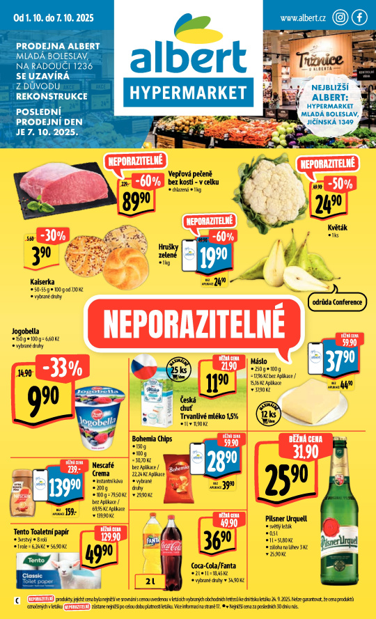 Albert Hypermarket leták - Mladá Boleslav, Na Radouči, st 1. 10. – út 7. 10.