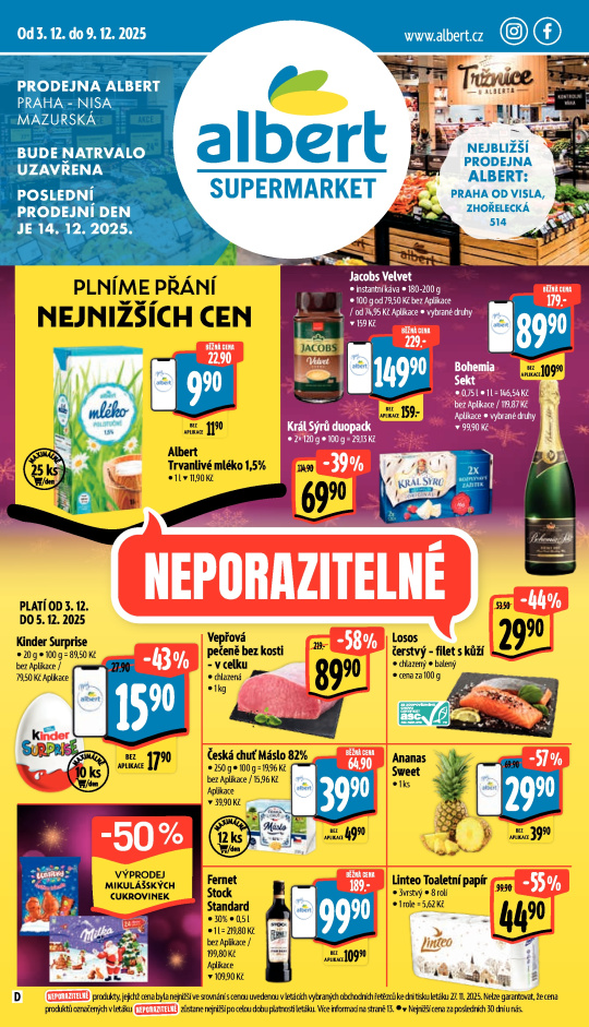 Albert Supermarket leták - Praha - Nisa Mazurská, st 3. 12. – út 9. 12.
