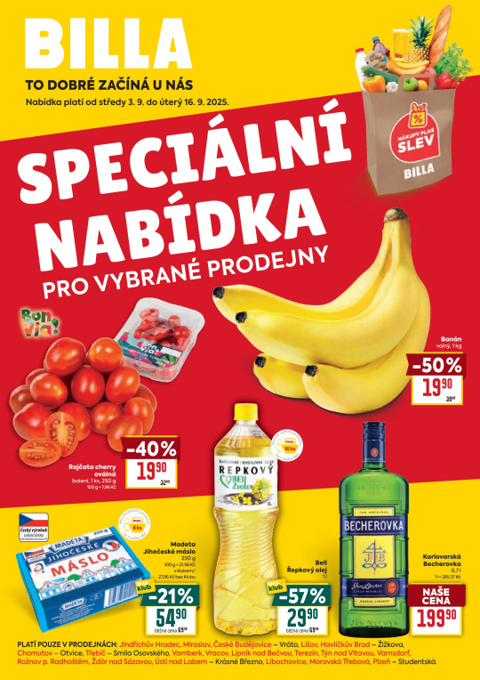 BILLA leták - Speciální nabídka pro vybrané prodejny, st 3. 9. – út 16. 9.