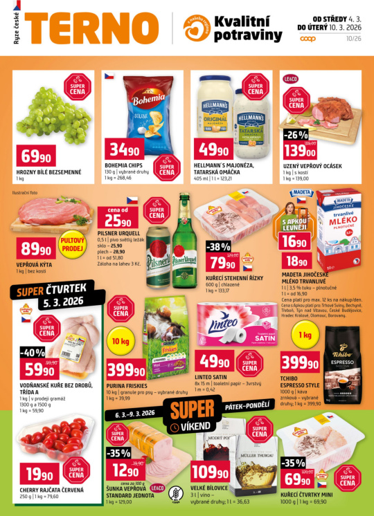 Terno leták - Zlín, Český Krumlov, Prachatice, Strakonice, Blatná, Tábor, st 4. 3. – út 10. 3.