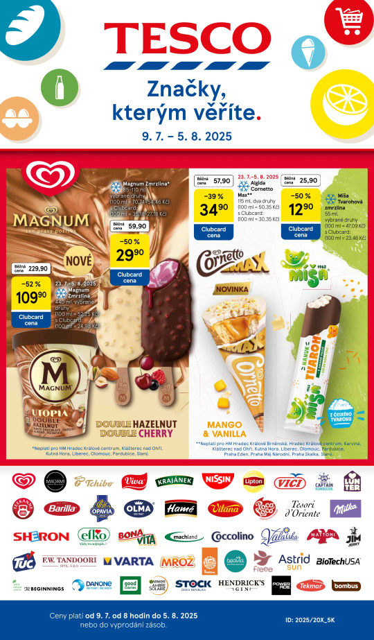 Tesco leták - Značky, kterým věříte, st 9. 7. – út 5. 8.