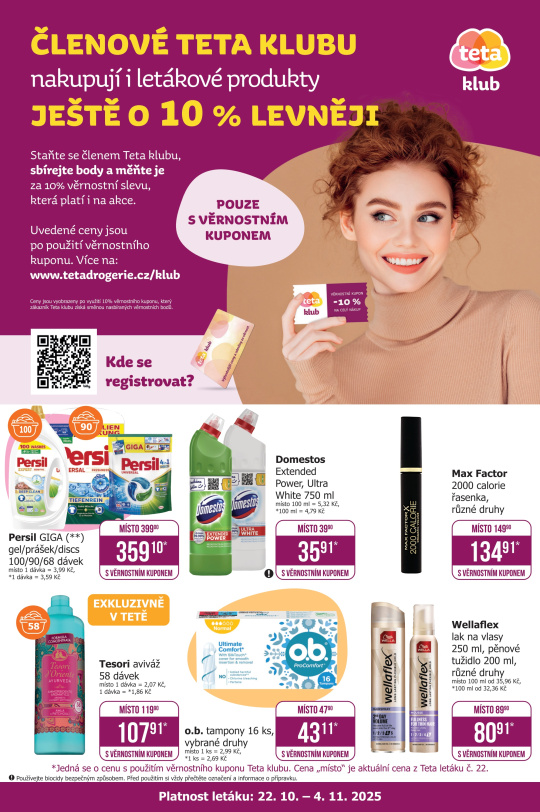 Teta drogerie - Teta klub, st 22. 10. – út 4. 11.