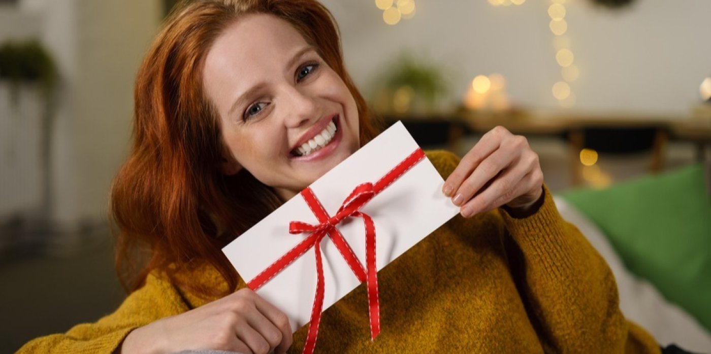 V mnohých obchodech si můžete vybrat z několika motivů kartiček, některé dokonce nabízí tematické vánoční. Určitě ale nezapomeňte poukázku ještě pěkně zabalit. Sáhnout můžete po dárkových obálkách a krabičkách, nebo ji vtipně darovat zarámovanou, ukrytou v knize či jiném dárku,případně ji zavěsit a ukrýt mezi ozdoby na stromeček a pod něj uložit indicii, kde se dárek nachází.