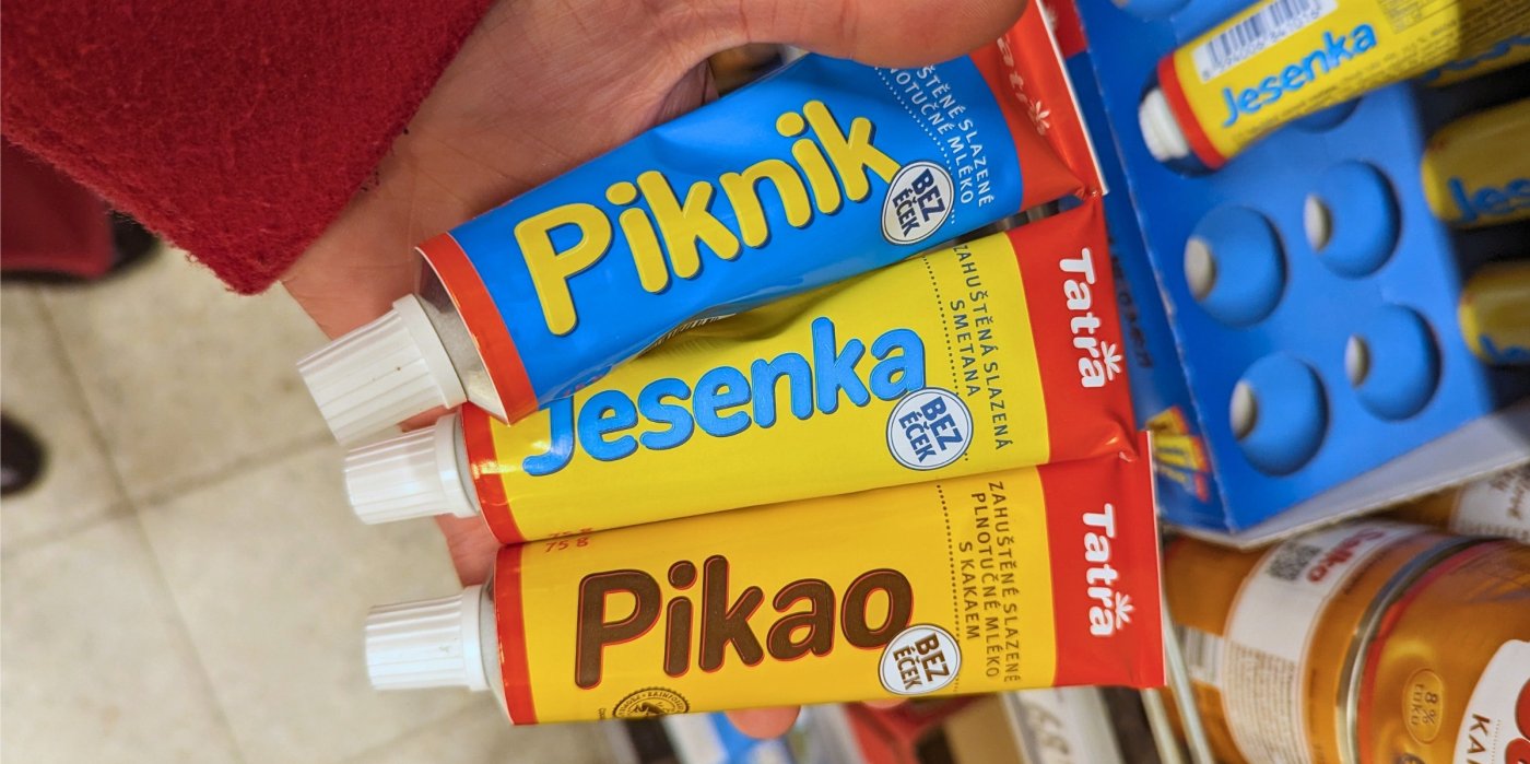 Kromě klasiky od značky Tatra jsou v našich obchodech dostupné tuby se zahuštěným slazeným mlékem například také od značek Condé nebo Pilos (z Lidlu).