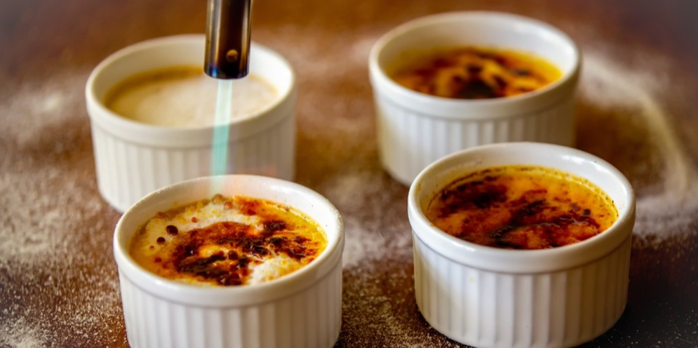 Jak na crème brûlée udělat karamelovou krustu, když nemáte cukrářskou pistoli? Existuje na to jeden trik. Před servírováním posypte crème brûlée cukrem. Nad plamenem nahřejte lžíci a horkou ji položte na cukr na dezertu – věřte nebo ne, ale zkaramelizuje.