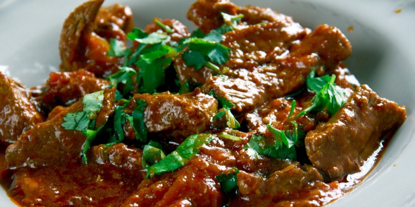 - K cibulce přidejte hovězí maso nakrájené na nudličky a orestujte. Opékejte, dokud maso nezmění barvu. Poté přidejte rajský protlak, bílé víno a prolisované stroužky česneku. Osolte, opepřete a duste pod pokličkou asi 2 hodiny.