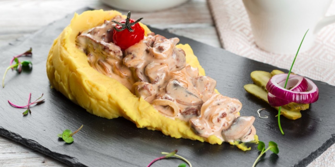 Žampionová omáčka s kuřecím masem je klasika české kuchyně, která nikdy nezklame. Toto jídlo v sobě spojuje bohatou chuť hub, jemnost smetany a výraznost kuřecího masa. Originální sevírování do bramborové kaše pak celé jídlo krásně oživuje a vytváří dokonalou harmonii chutí a textur.