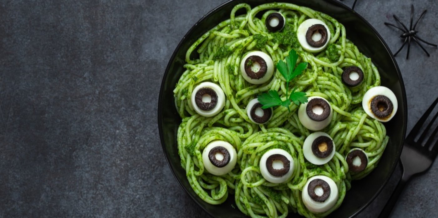 Hledáte originální recept na halloweenskou párty, který zaujme děti i dospělé? Připravte si strašidelné špagety s bazalkovou omáčkou a roztomilými duchy z mozzarelly. Tento jednoduchý, ale efektní pokrm kombinuje klasické italské chutě s hravou halloweenskou tématikou. Zelená bazalková omáčka představuje mystické bažiny, ze kterých vystupují bílí duchové z mozzarelly s černýma olivovýma očima. Recept je nejen chutný, ale také zábavný na přípravu a perfektně se hodí pro jakoukoliv halloweenskou oslavu.