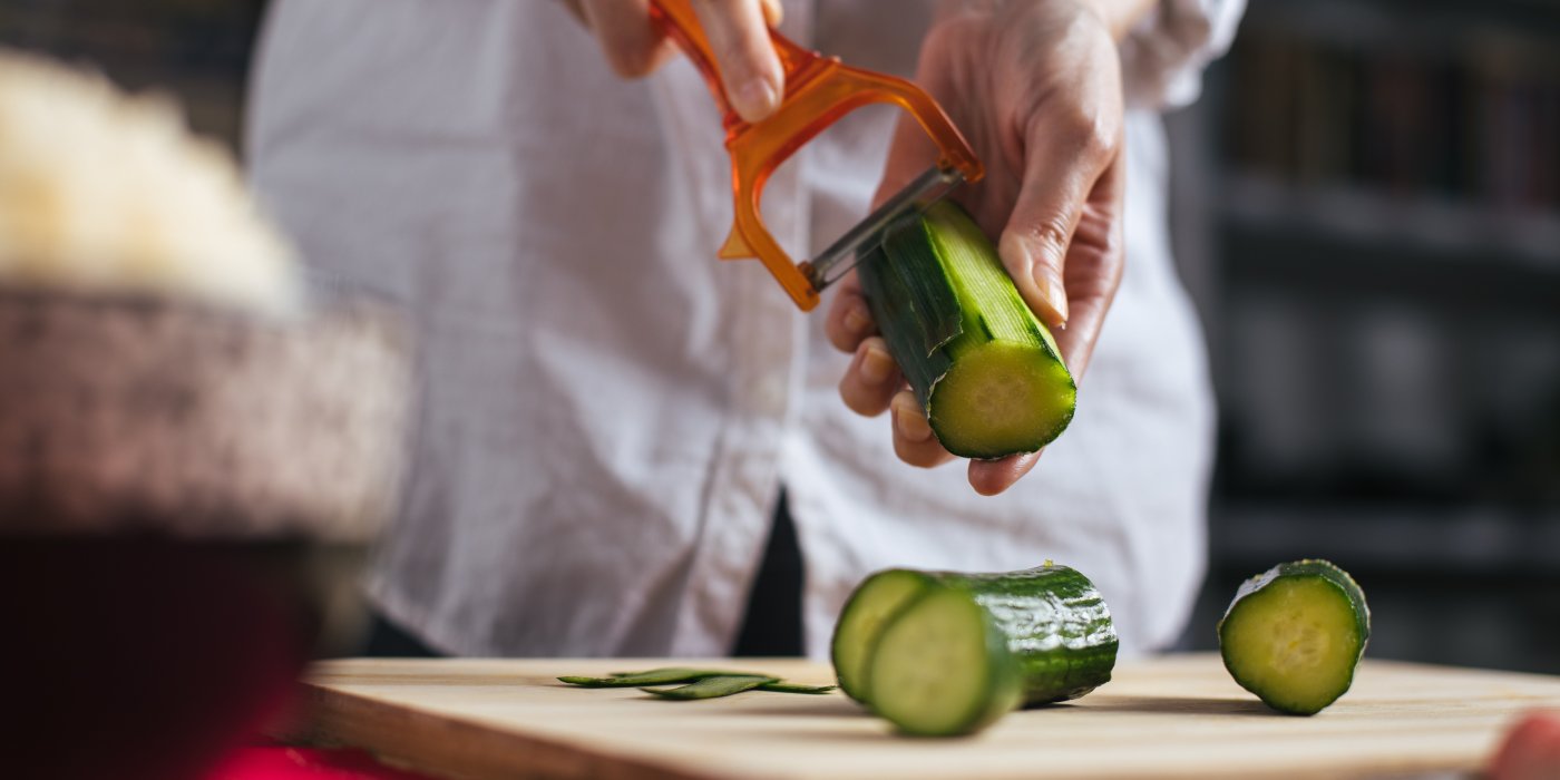 Slupka salátových okurek je jemná a plná vitamínů. Loupání je zbytečné, pokud nejde o polní okurky s tvrdší slupkou. Navíc salát s neloupanými okurkami vypadá barevněji a svěžeji. Slupka okurky obsahuje vlákninu, která podporuje trávení. Pokud se bojíte pesticidů, stačí okurku omýt v roztoku vody a jedlé sody.