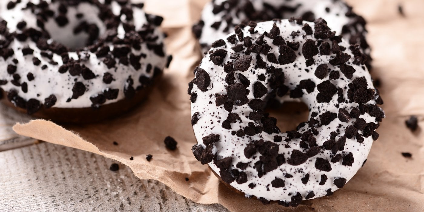 - Vychladlé koláčky namáčejte do připravené polevy a ozdobte je kousky Oreo sušenek. Nechte chvíli zaschnout a podávejte.