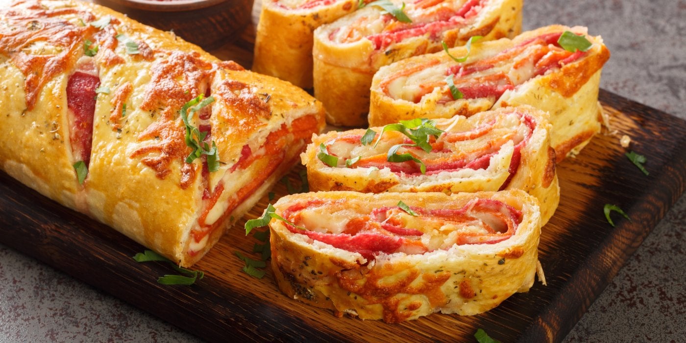 Co dělá Stromboli tak výjimečným? Jeho univerzálnost! Můžete ho servírovat jako hlavní jídlo s lehkým salátem, nakrájet na menší kousky jako předkrm, nebo zabalit s sebou na piknik. Příprava je překvapivě jednoduchá a náplň můžete přizpůsobit podle toho, co máte rádi nebo co najdete v lednici. Od klasické kombinace šunky a sýra až po vegetariánské varianty plné grilované zeleniny – Stromboli vás nikdy nezklame svou chutí ani vzhledem.
