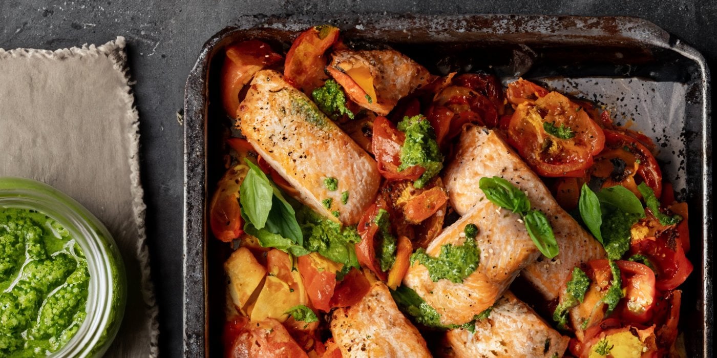 Hledáte inspiraci na rychlou, zdravou a chutnou večeři, která nezabere moc času a nádobí? Tento recept na lososa se zeleninou z jednoho plechu vás nadchne svou jednoduchostí i výsledkem! Šťavnatý losos s křupavou zeleninou a bazalkovým pestem je ideální volbou pro ty, kdo chtějí jíst dobře, ale nemají čas na složité vaření. Připravte si tento pokrm během hodinky a užijte si dokonalou kombinaci chutí, která potěší vaše chuťové buňky i žaludek. A víte co? Po tomhle receptu nebudete muset skoro ani mýt nádobí!