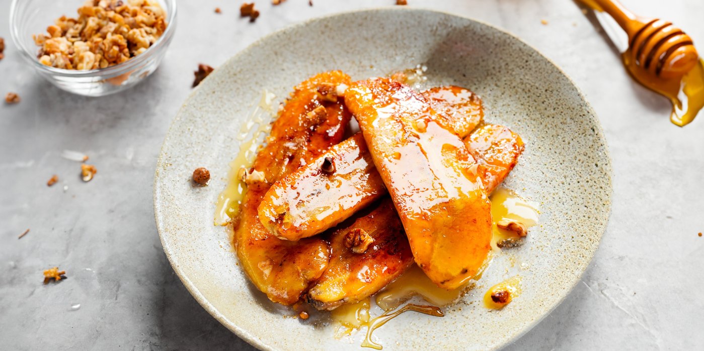 Banány jsou nejen chutné, ale také plné skvělých živin. Obsahují draslík, který je důležitý pro správnou funkci svalů a nervů, a zároveň jsou skvělým zdrojem energie díky svému přirozenému obsahu cukrů. Rum, který v tomto receptu přidáváme, pochází z cukrové třtiny a je známý pro svou intenzivní vůni a sladkou chuť. V kombinaci s medem, přírodním sladidlem plným antioxidantů, a křupavými ořechy, které dodávají zdravé tuky, vzniká dezert nejen lahodný, ale i plný zajímavých ingrediencí s přidanou hodnotou.