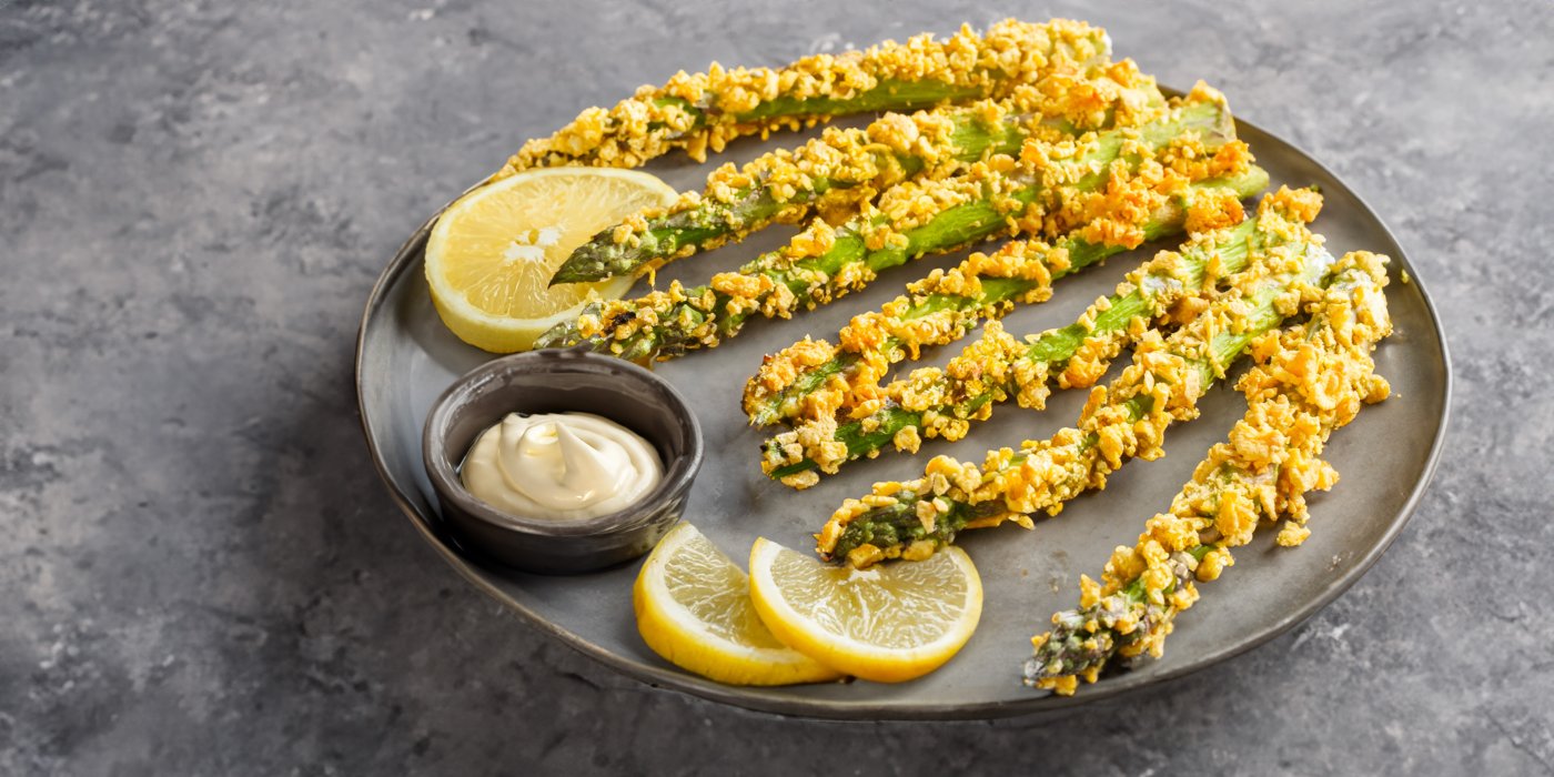 Keto pečené chřestové hranolky s parmezánem a panko strouhankou