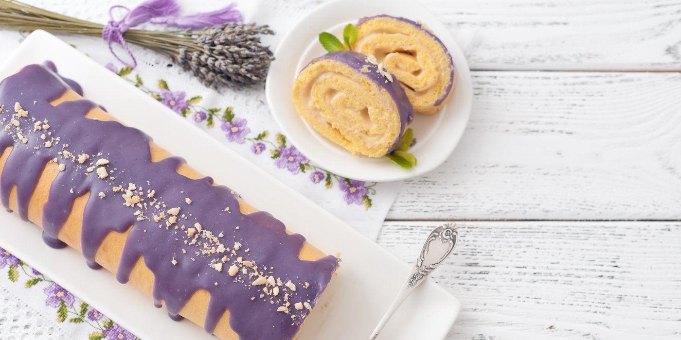 V tomto receptu ji použijeme jako aroma do polevy, kterou lehce dotónujeme fialovým barvivem, aby výsledek vypadal doslova jako z cukrářského katalogu. A navíc – levandule podporuje dobrý spánek. Takže po roládě sladké sny zaručeny!