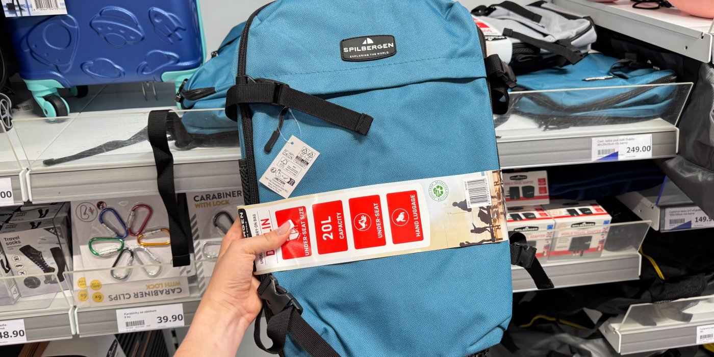 Léto je obdobím cestování. Pokud se chystáte na dovolenou letadlem, jednou z věcí, kterou pravděpodobně řešíte i vy, jsou zavazadla a jejich rozměry. Pokud ještě náhodou nějaké sháníte, máme pro vás tip. V Actionu jsme narazili na batoh, který do centimetru splňuje požadavky na rozměry malého zavazadla pod sedadlo u Ryanairu a stojí jen 249 Kč.