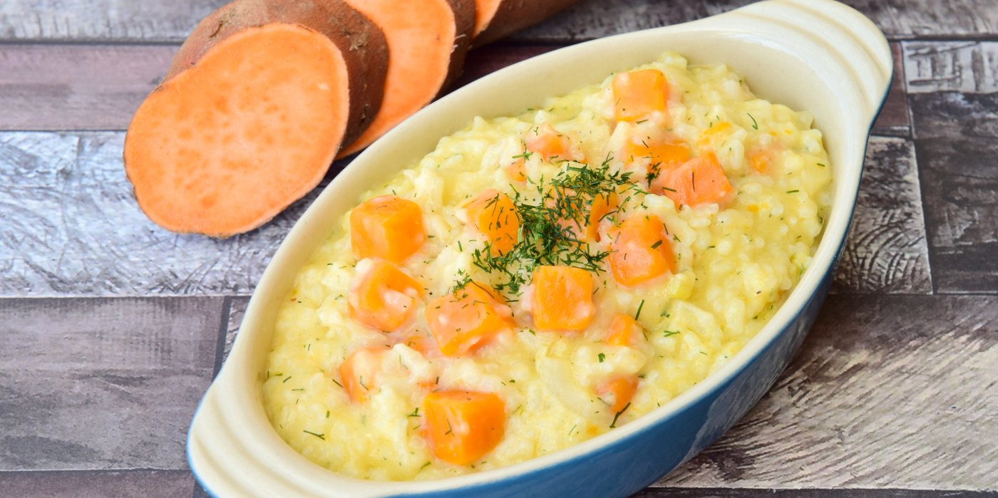 Batáty neboli sladké brambory jsou výživově nabité a přitom neskutečně univerzální. Obsahují spoustu vlákniny, vitamínu A a komplexních sacharidů, které zasytí, ale nezatěžují. V kuchyni hrají roli sladkého i slaného parťáka – skvělé jsou na pečení, do pyré, polévek i právě do rizot. Jejich nasládlá chuť krásně kontrastuje s umami chutí hub a krémovým mascarpone. Navíc vypadají na talíři nádherně. A tip navíc: Batáty jsou skvělé i pro malé děti nebo jako základ zdravého oběda do krabičky.