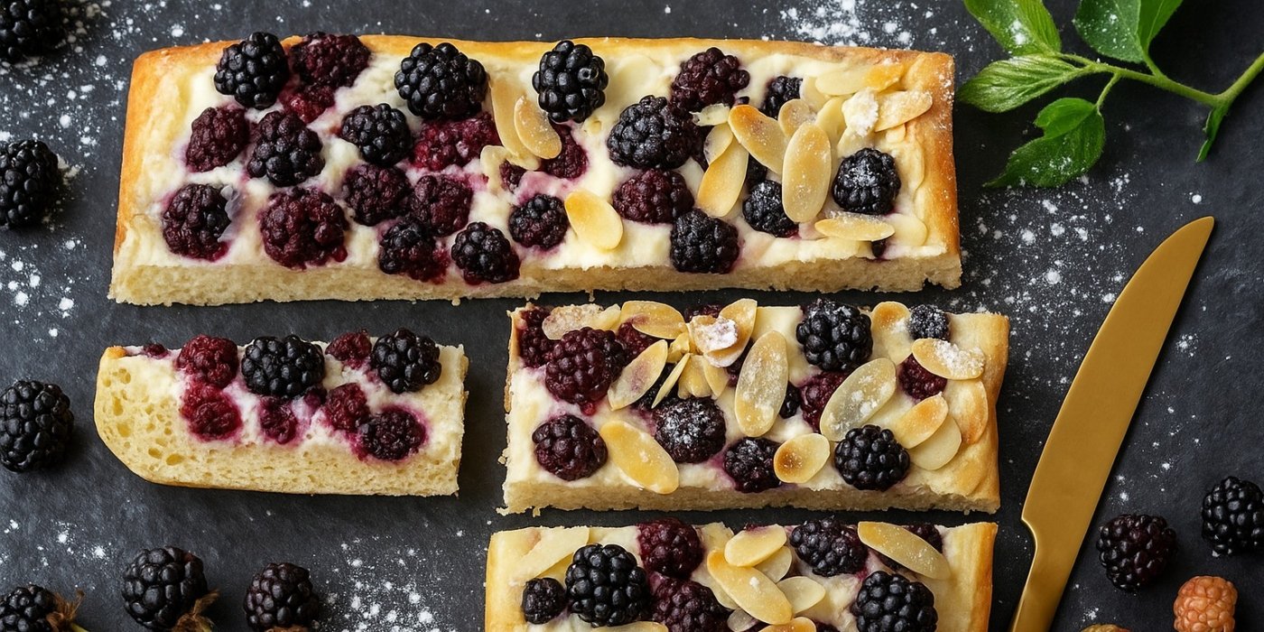 Tvarohový koláč s ostružinami a mandlemi – recept