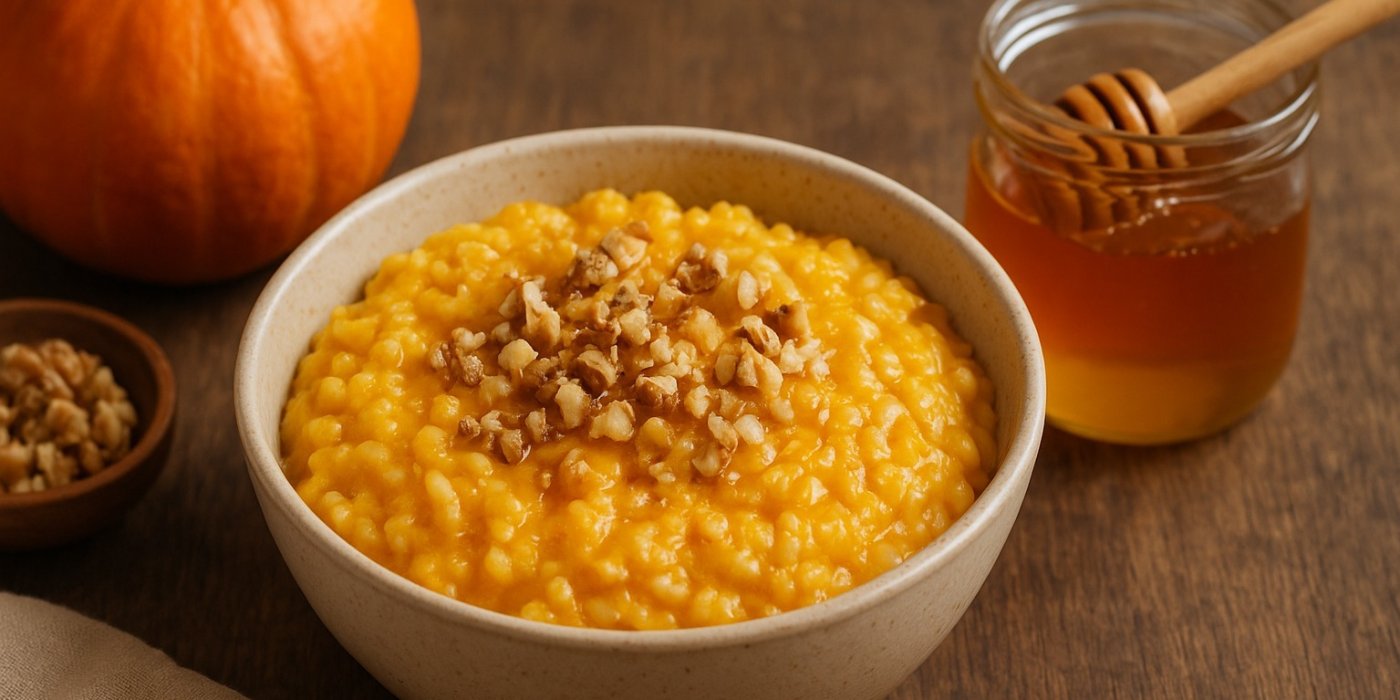 Dýně je skutečná hvězda podzimní sezóny. Nejenže má nádhernou barvu a nasládlou chuť, ale také je plná vitamínu A, betakarotenu a vlákniny. Věděli jste, že dýně původně pochází z Ameriky a do Evropy se dostala až v 16. století? A od té doby se stala symbolem podzimu. V Itálii se z ní vaří krémová risotta, v Americe slavný pumpkin pie a u nás ji čím dál častěji využíváme i na sladko. A právě tahle sladká verze rizota je důkazem, že dýně má mnohem širší využití, než je jen polévka.
