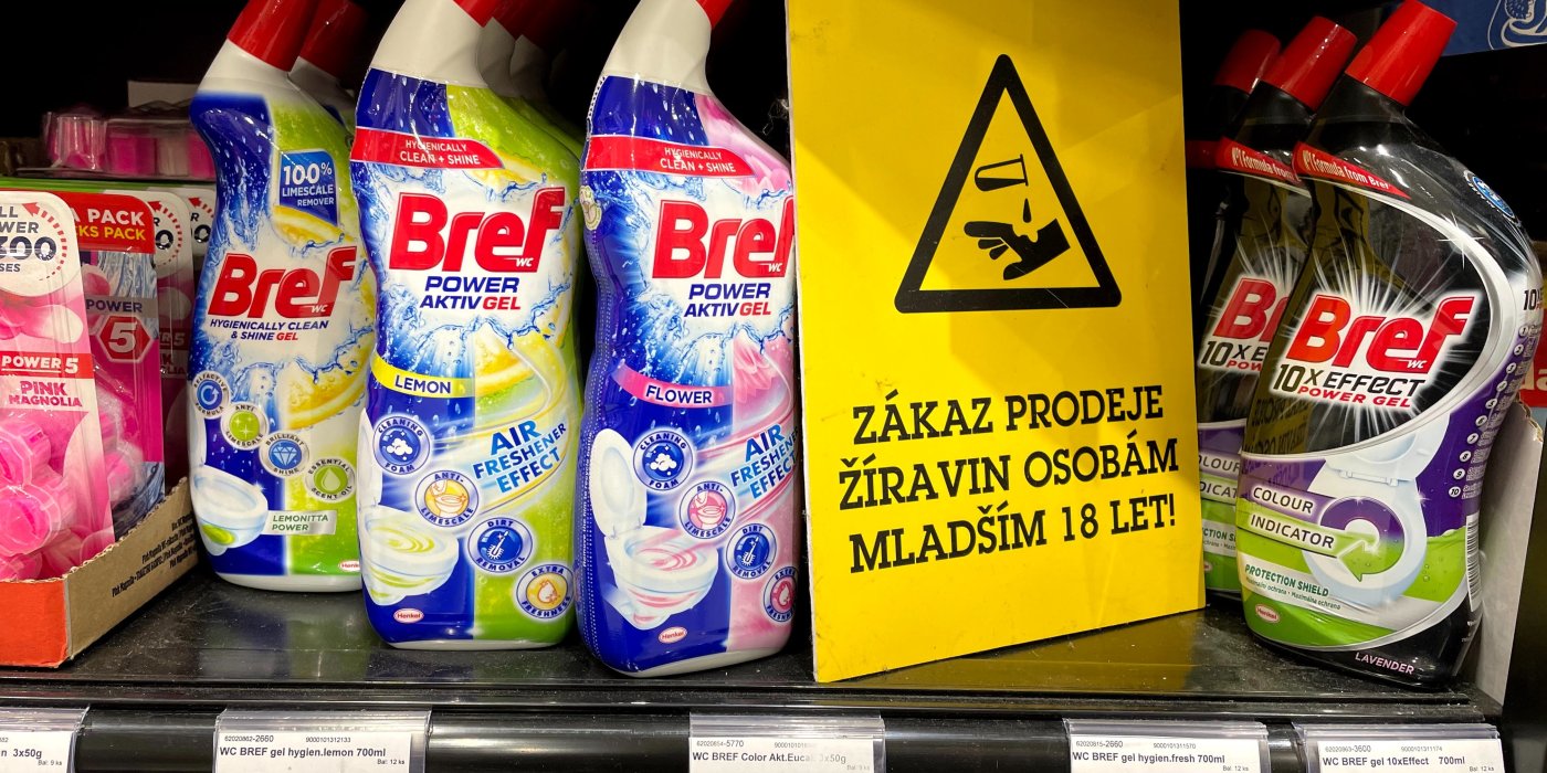Na první pohled nenápadné prostředky na úklid, ve skutečnosti ale chemikálie, které mohou vážně poškodit zdraví. Podle zákona č. 258/2000 Sb., o ochraně veřejného zdraví, nesmí být chemické látky a směsi klasifikované jako žíravé prodány osobám mladším 18 let. Stejně tak to připomínají i evropská pravidla o klasifikaci a označování látek nařízení CLP č. 1272/2008.