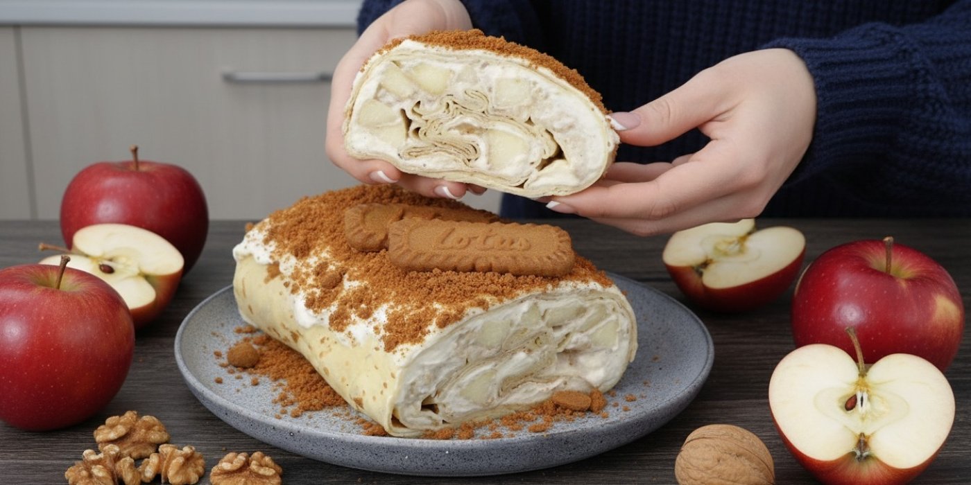 Pokud milujete jablka, skořici a vůni čerstvě upečených sušenek, tahle lotus jablečná roláda se stane vaším novým podzimním favoritem. Kombinuje nadýchané špaldové palačinky, jemný tvarohový krém a karamelovou drobenku z lotus sušenek. Je lehčí než klasická roláda, ale přesto neuvěřitelně lahodná. Hodí se jako dezert ke kávě, ale klidně i jako sladká odměna po cvičení.