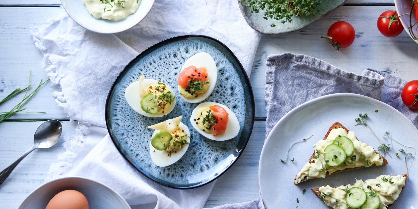 Delikatesa, která ozdobí obložený talíř a nabudí k chuti i samostatně – řeč je o plněných vejcích. S náplní si opravdu můžete vyhrát. Vejce stačí rozkrojit podélně na poloviny a vyndat žloutek. Ten poté rozmačkejte vidličkou a pusťte se do ochucování. Nejprve musíte žloutek spojit do jednolité směsi. K tomu použijte hořčici (vynikající je i její medová varianta), tvaroh, smetanový sýr nebo třeba avokádo.
