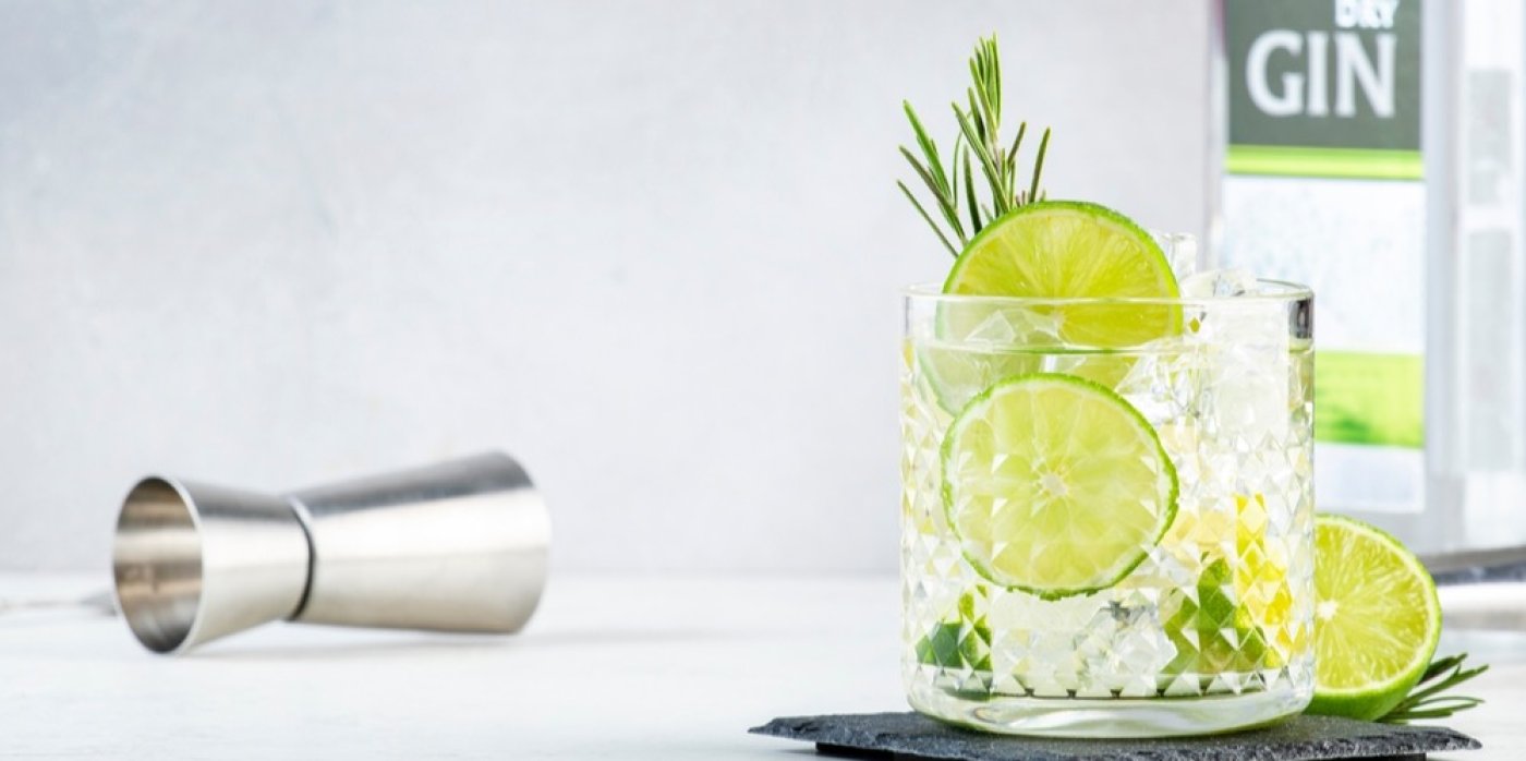 Gin tonic se podává ve vysoké sklenici s ledem a je ideální pro osvěžení v horkých dnech.
