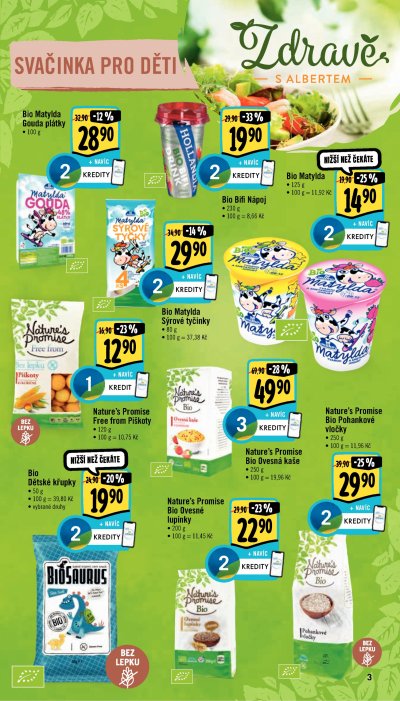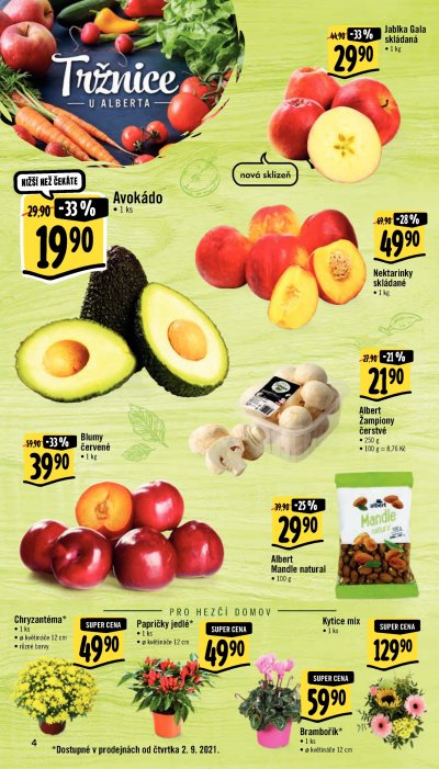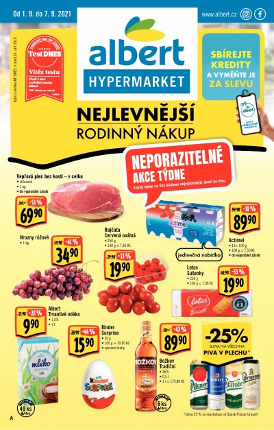 Akce platí do úterý 7. 9. A že chcete i něco zajímavějšího? Pak v supermarketech Albert přihoďte ke svému nákupu Avokádo v akční ceně 19,90 Kč. Anebo potěšte děti vajíčkem Kinder Surprise, které v hypermarketech Albert koupíte za 15,90 Kč.