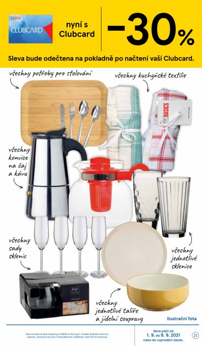Akce platí do úterý 7. 9. A pokud si chcete udělat radost do domácnosti, i to můžete. Pokud vlastníte Tesco Clubcard, získáte zde 30% slevu na kuchyňské nádobí a potřeby pro stolování. A i bez kartičky zde pořídíte oblečení z kolekce Denim, ve slevě 20% až do 14. 9.