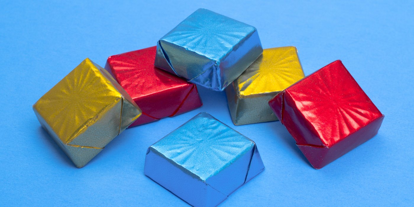 Původně byla čokoládová hmota dostupná v barevných košíčcích, později získala tvar kostek a balila se do různě barevného staniolu a prodávala v igelitových kornoutech.