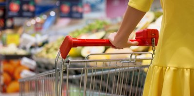 Žena tlačí nákupní vozík v supermarketu Kaspars Grinvalds / Shutterstock.com