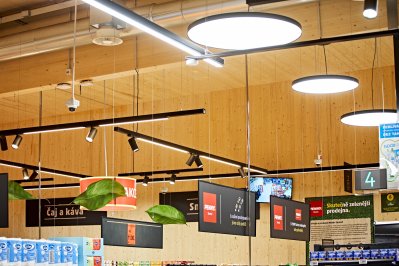 Unikátní technologie byla využita už při samotné výstavbě nové prodejny. Na nosnou konstrukci bylo použito 399 m3 dřeva, konkrétně 346 m3 křížem lepeného masivního dřeva CLT a 53 m3 lepených BSH nosníků a k tomu navíc 17 m3 dřevěného fasádního obkladu Thermowood. Díky tomu se jedná o první celodřevěný diskontní obchod v České republice.