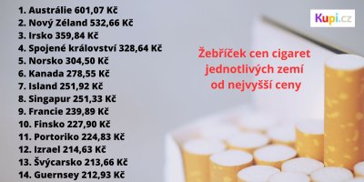 Cigarety jsou v Česku sortimentem, jehož nákup výrazně přispívá do státního rozpočtu. Z každé prodané krabičky je celková daň kolem 80 Kč. Kouří u nás třetina dospělé populace, a to i přesto, že cena cigaret rok od roku stoupá. Pro někoho je cigareta možností, jak si ulevit od stresu, jak si lépe vychutnat kávu, nebo třeba jen závislostí, kterou si nechce odpírat. Ačkoliv jsou u nás cigarety drahé, existují dokonce země, kde krabička cigaret stojí mnohem více.