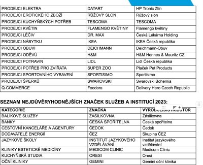 Nejdůvěryhodnější značky 2023 přinesly řadu překvapení