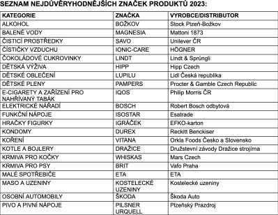 Již podeváté volili čeští zákazníci značky, kterým nejvíce důvěřují. Vítězné značky byly vyhlášeny na slavnostním galavečeru, který proběhl v historickém prostoru Kongresového centra České národní banky. Do průzkumu byly zahrnuty značky, které jsou těmi nejsilnějšími na českém trhu, a to v 92 kategoriích, přičemž v každé kategorii může být pouze jeden vítěz. Deset kategorií bylo nových, reagujících na situaci ve společnosti a na trhu. Ve většině tradičních kategorií zůstali ale čeští zákazníci poměrně konzervativní a volili jistotu. Do průzku-mu byl zapojen reprezentativní vzorek čtyř tisíců respondentů, hodnotící značky v oblastech, jako jsou služby a instituce, prodejci a výrobci potravin, ale i lékárenské produkty, stavebniny a další.