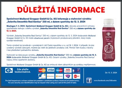 PENNY oznámilo, že stahuje ze svých prodejen ovocné smoothie, které může obsahovat škodlivé látky. Ke stejnému kroku přistoupil také řetězec Lidl. Oba produkty pochází od jednoho výrobce a mohou představovat zdravotní riziko pro zákazníky. O které výrobky se konkrétně jedná?