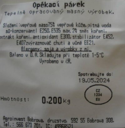 Státní veterinární správa (SVS) nařídila stáhnout z prodeje párky od výrobce Agroinvest Bobrová z Kraje Vysočina. Důvodem je nález bakterie Listeria monocytogenes v celé šarži o hmotnosti 80 kilogramů. SVS upozorňuje spotřebitele, aby opékací párky nekonzumovali a vrátili je v prodejně, kde výrobek koupili.