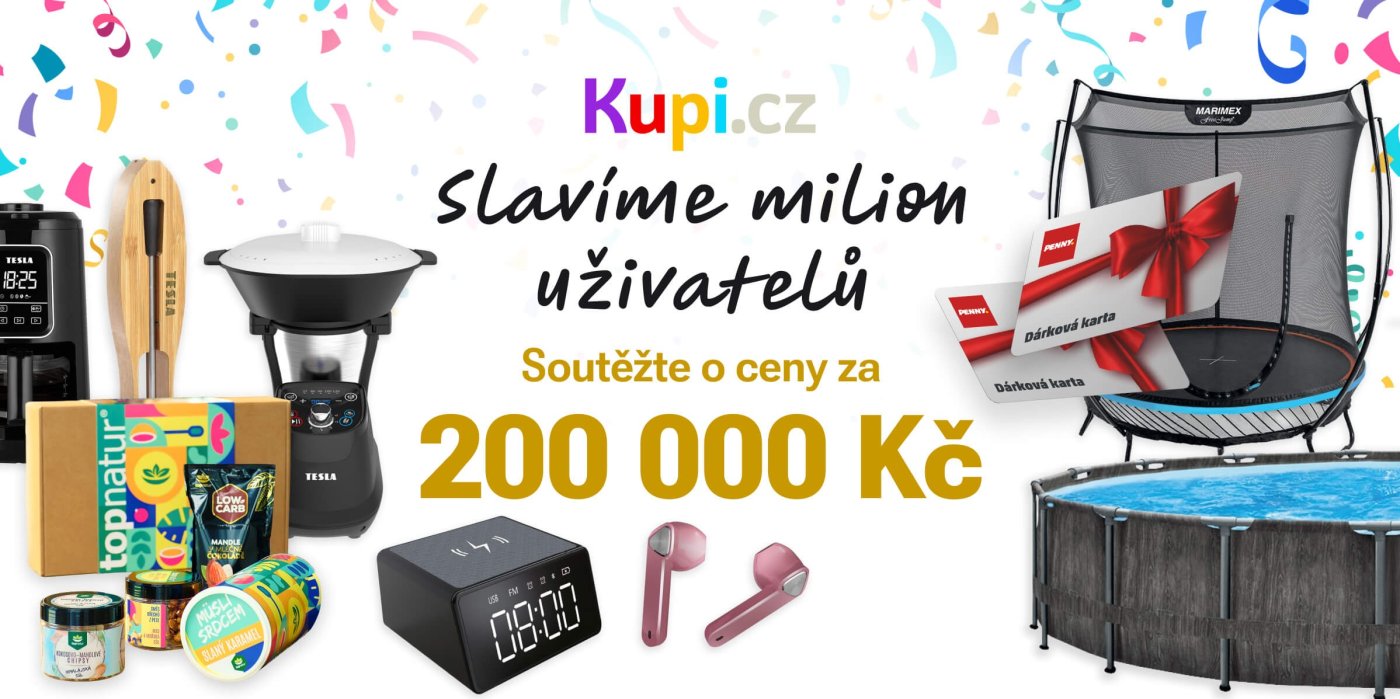 V Kupi slavíme! Zaregistrovalo se u nás už 1 milion uživatelů a každý měsíc máme na našem webu 2 miliony návštěvníků. To chce pořádnou oslavu! Kupi je největším nákupním rádcem a těší nás, že právě u nás sledujete nejvýhodnější ceny a hledáte inspiraci pro své nákupy. Proto pro vás máme soutěž o skvělé ceny. Jaká jsou pravidla soutěže a co můžete vyhrát?