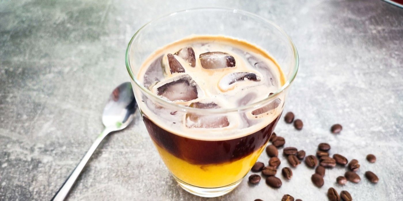 Tato osvěžující ledová káva je neodolatelná i na pohled. Vrstvy pomerančového džusu a kávy jsou od sebe viditelně oddělené. Jak toho doma docílíte? Kávu do sklenice s džusem nalévejte pomalu z malé výšky. Můžete si vzít na pomoc i malou lžičku a kávu pomalu nalévat přes ni.
