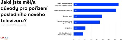 Z průzkumu vyplývá, že běžná česká rodina si život bez televize stále neumí představit, přestože jí v posledních letech konkurují obrazovky telefonů nebo tabletů. Jen méně než 8 % Čechů doma nemá žádnou televizi a 30 % si koupilo novou v posledních dvou letech. Důvodem je mj. výrazný pokles cen u velkoformátových TV.