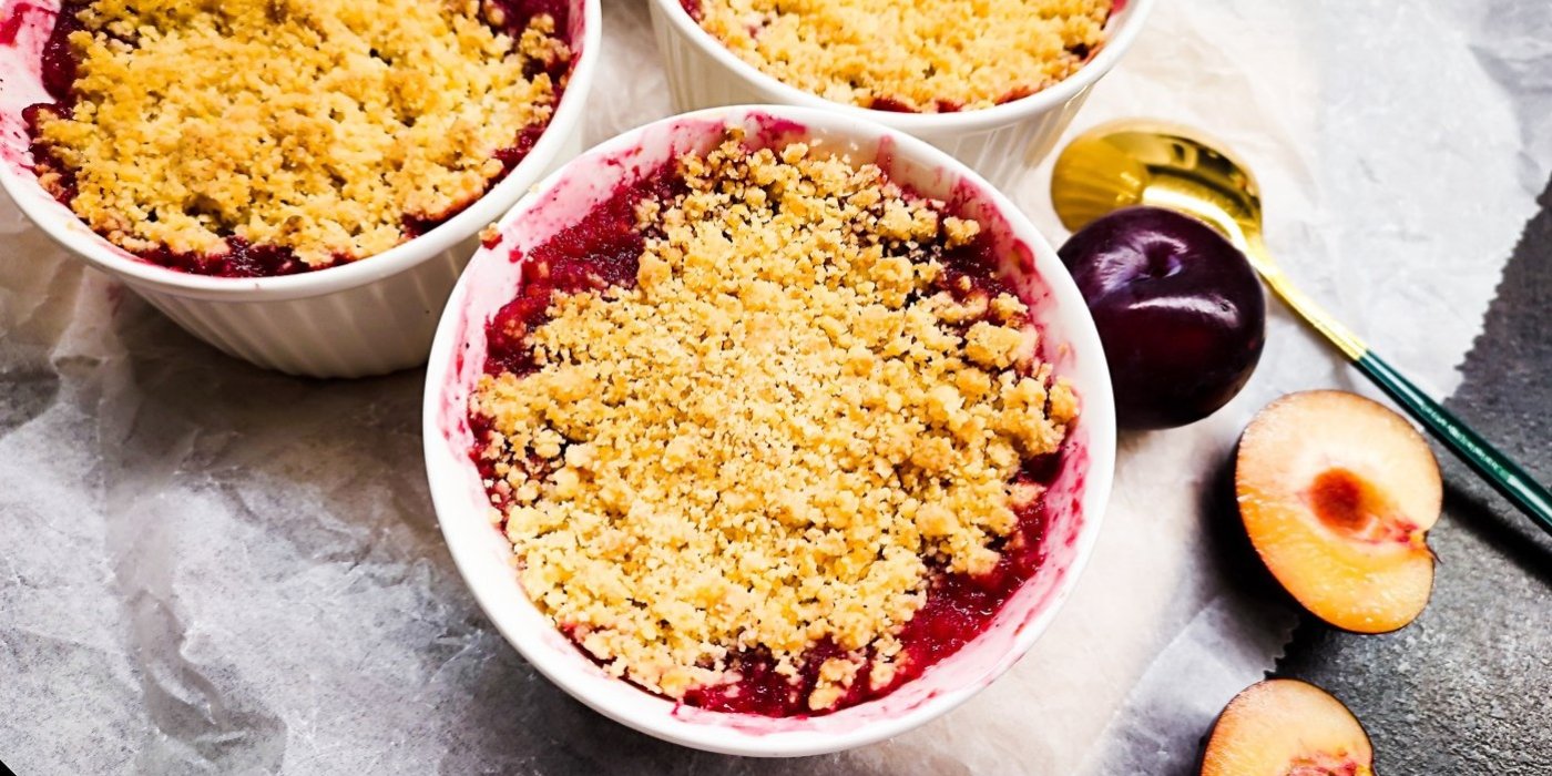 Crumble je hodně zjednodušenou verzí drobenkového koláče. Potřebujete na něj jen 2 věci – čerstvé ovoce a drobenku. A co dál? Stačí dát ovoce do menších misek, zasypat drobenkou, dát upéct a máte hotovo. V jednoduchosti je krása a o crumblu to platí dvojnásob.