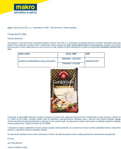 Pokud jste milovníci sýrů, pak by vám neměla ujít tato důležitá zpráva o stažení některých druhů sýrů z prodeje. Makro Cash & Carry ČR s.r.o. a Delmart informují zákazníky o kontaminaci svých produktů bakteriemi, které mohou představovat zdravotní riziko. Zjistěte, jakých výrobků se to týká a co dělat, pokud jste je zakoupili.