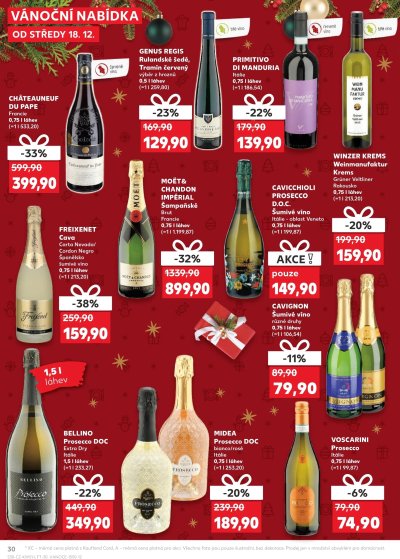V předvánočním shonu nechybí v akčních letácích kromě slev na základní suroviny také nabídka lahůdek, které vám zpříjemní sváteční chvíle. Od exotického ovoce až po luxusní šampaňské nebo třeba ingredience k přípravě štěpánského menu. Podívejte se s námi na to, s jakými slevami přichází od 18. 12. do 24. 12. řetězce Albert, BILLA, Kaufland, Lidl, PENNY a Tesco.