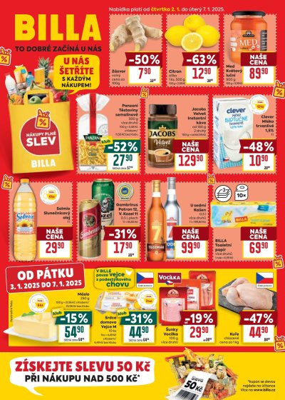Se začátkem nového roku přichází řetězce se slevami na potraviny, které jste možná stihli během uplynulých svátků spotřebovat. V akčních letácích týdne, platných od 2. 1. do 7. 1., ušetřete na másle, mléčných výrobcích, mase, těstovinách i nápojích. Kam za nimi vyrazit?