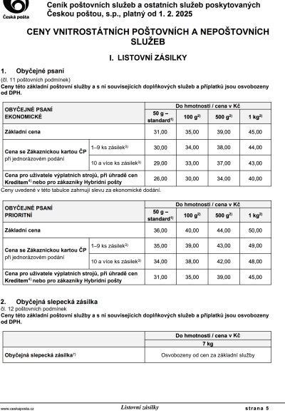 Od února čekají klienty České pošty výrazné změny v ceníku. Nejvíce zasáhnou důchodce a běžné uživatele poštovních služeb. Kolik budou platit senioři za vyplacení důchodu a na kolik vyjde poslání obyčejného dopisu?