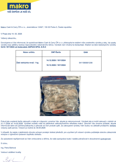 České obchody Makro a BILLA stahují z prodeje hned několik potravin kvůli vážným zdravotním rizikům. U mražených žabích stehýnek byla zjištěna přítomnost nepovoleného veterinárního léčiva, zatímco u sójových produktů a sýru Grana Padano se objevily toxické látky a plísně. Pokud máte tyto výrobky doma, raději je nekonzumujte. Co přesně se děje a jak postupovat při vrácení? Vše důležité se dozvíte v článku.