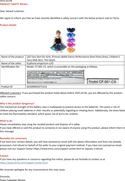 E-shop Temu čelí vlně kritiky a stahuje z prodeje hned několik výrobků, které mohou představovat vážné riziko pro zdraví a bezpečnost. Mezi nimi najdete dětské LED sukně, nabíječky na mobily, nebo dokonce oblíbené dětské hračky. Co přesně se stalo a proč jsou tyto produkty nebezpečné? To se dozvíte dále v článku.