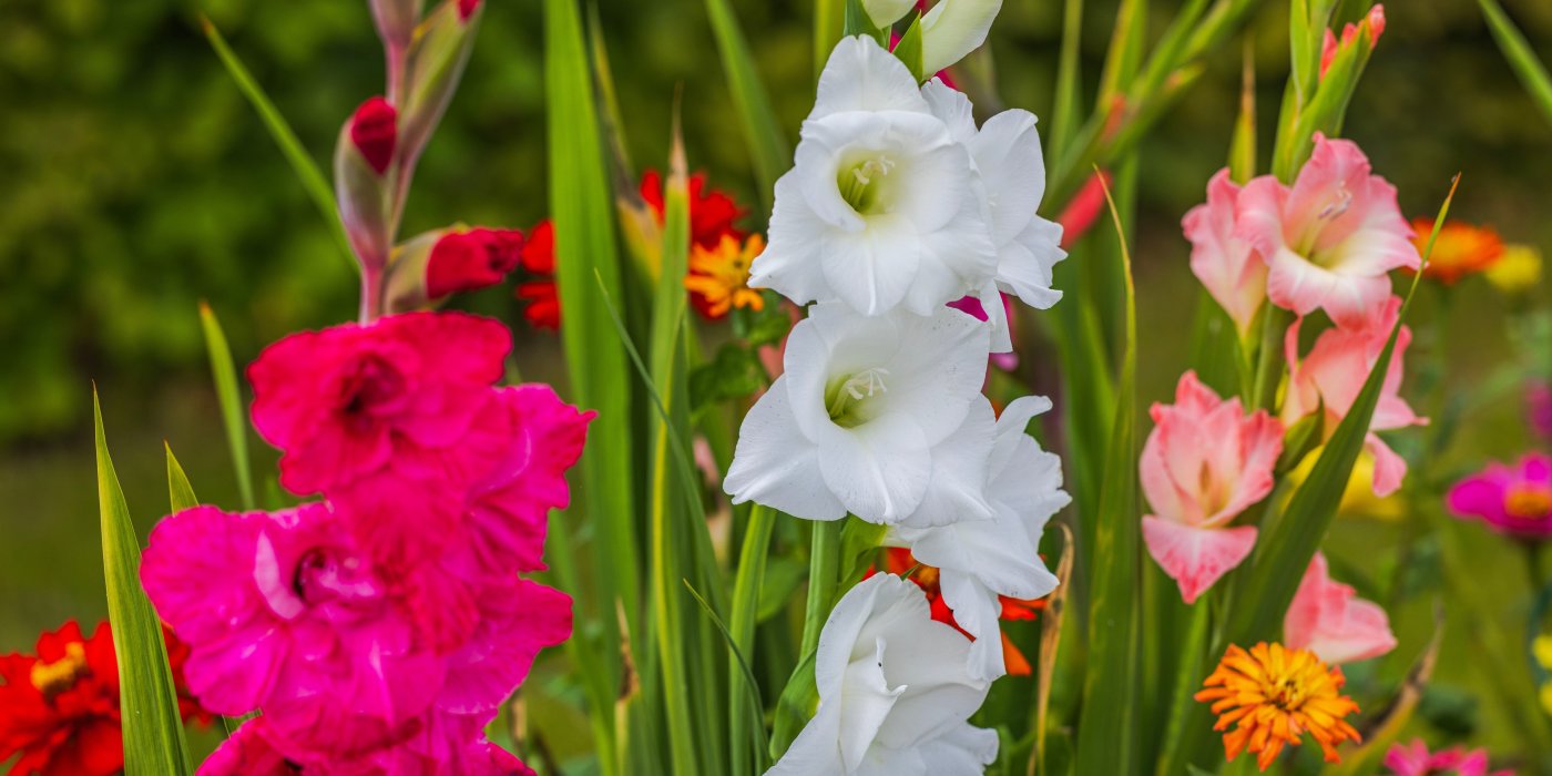Jiřiny preferují slunné stanoviště a propustnou půdu a před výsadbou je vhodné hlízy namočit na několik hodin do vody, což podpoří jejich růst. Mečíky se sázejí do hloubky přibližně 10 cm s rozestupy 10 až 15 cm mezi cibulkami. Pro silné a zdravé květy je důležité pravidelné zalévání a odstraňování odkvetlých částí květů.