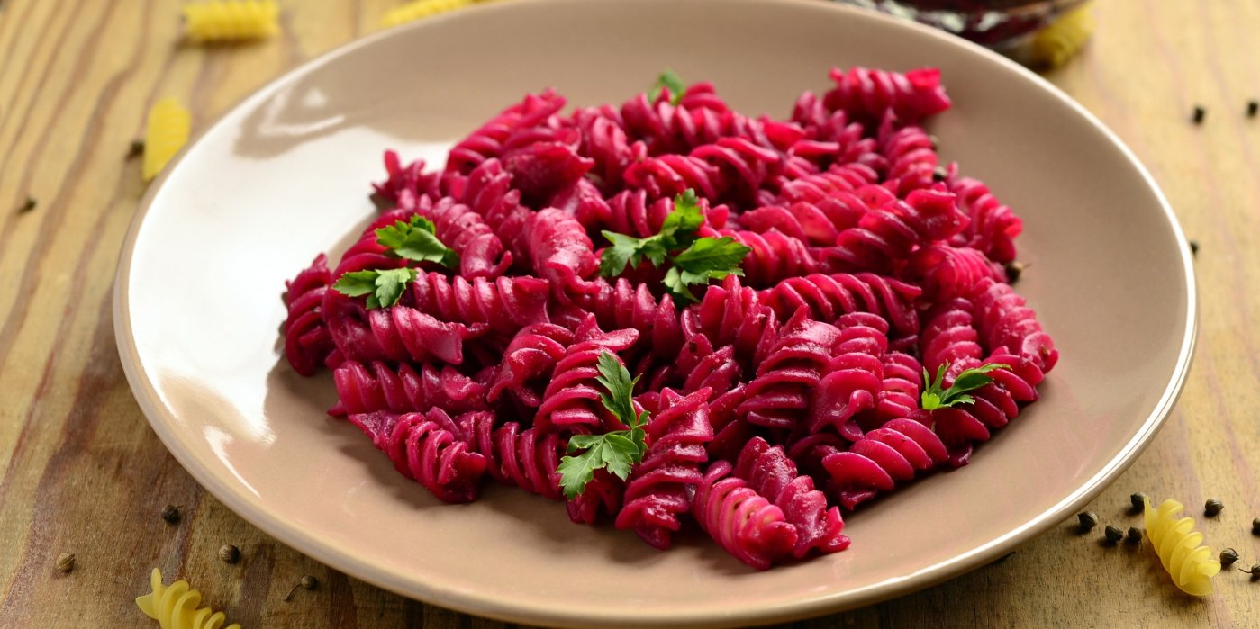 Tento recept na těstoviny s červenou řepou a krůtím masem je velmi snadný, skvěle chutná a také vypadá. Díky předvařené řepě a snadné přípravě krůtích prsou budete mít na stole lahodný oběd za méně než hodinu. Je to též skvělý způsob, jak do členů rodiny vpravit mnohdy nepopulární červenou řepu.