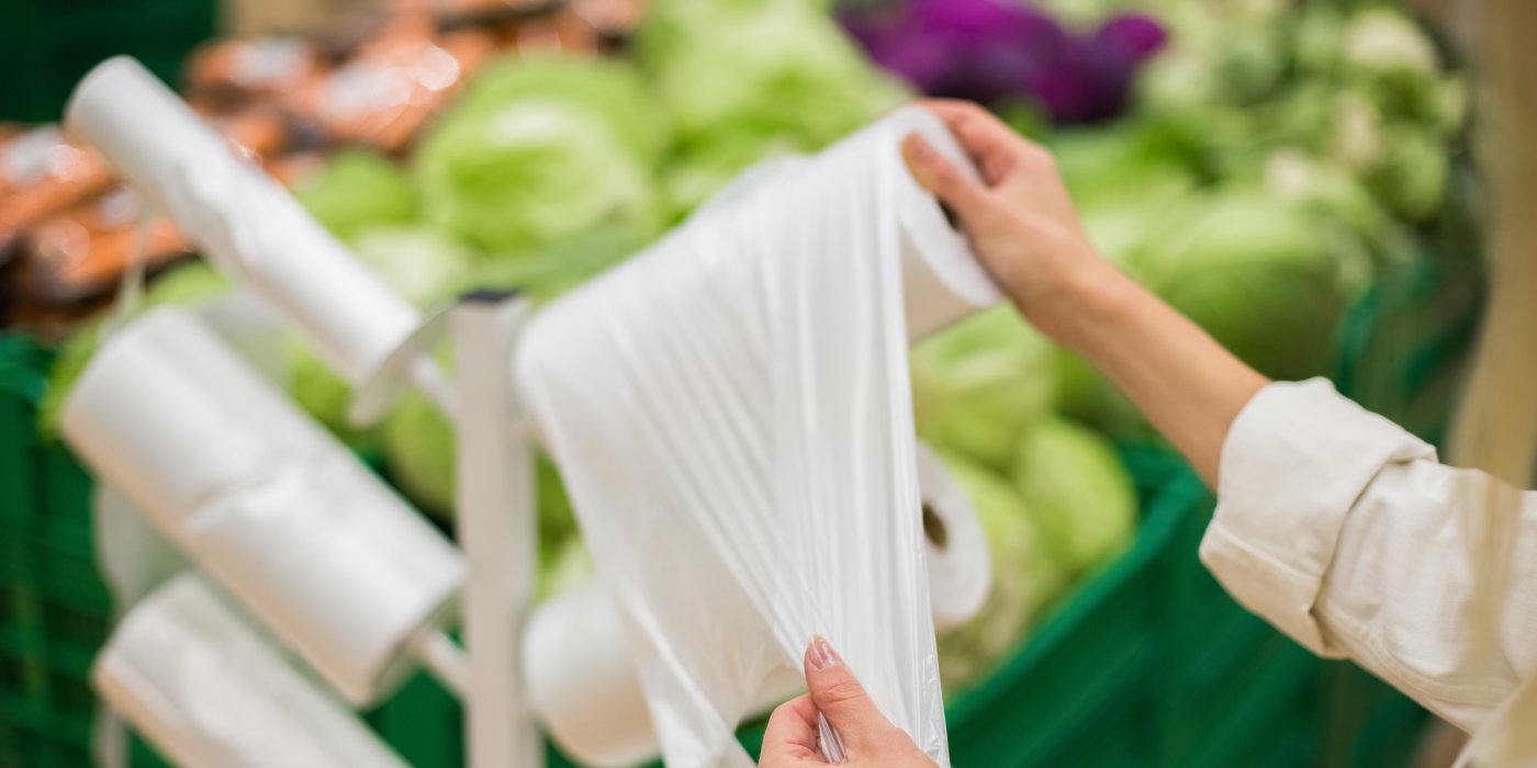 Žena vytahuje sáček z role v supermarketu Cat Us / Shutterstock.com